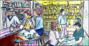 mujeres inmigrantes que también conversan, algún jubilado que bebe su taza de café expreso en silencio