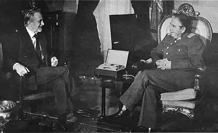 Augusto Pinochet y Lucía Hiriart junto a Enrique Campos Menéndez,
