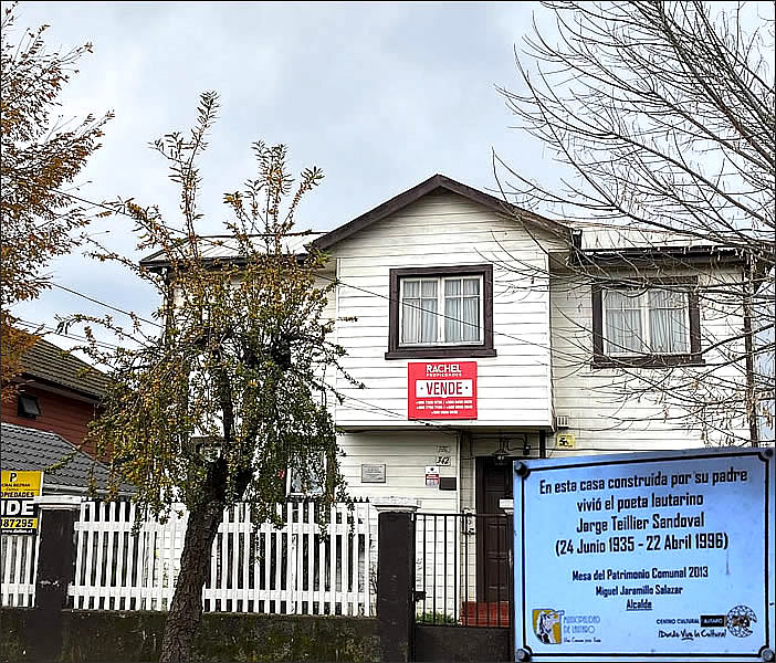 En una página de propiedades de internet aparece la siguiente descripción: «Casa Patrimonial Jorge Teillier», jardines e historia, y una breve reseña del poeta. No aparece publicada la elevada suma de su venta.