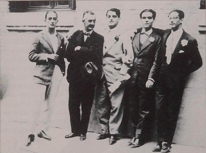 Salvador Dali, Jose Moreno Villa, Luis Buñuel, Federico Garcia Lorca y José Antonio Rubio Sacristán
