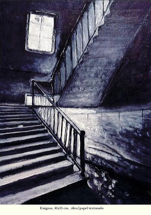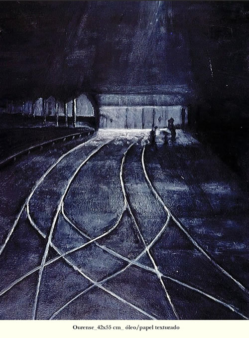 Es decir, cada oleo es “casi” una fotografía hecha a mano que posee la capacidad de dar forma al instante justo, al signo vivo que señala múltiples interpretaciones y sentidos; ahí donde el mundo palpita y lo efímero adquiere materialidad visual. Incluso podríamos hablar de una migración interior; desplazamientos expresivos entre luces y sombras, reales o no, en el claroscuro mental de Galicia.