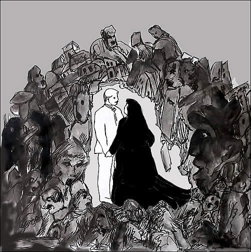 nadie sino esa gente de negro callada, sorprendida, rabiosa, observando nuestros pasos, sin moverse, esperando que cayéramos del círculo oscuro