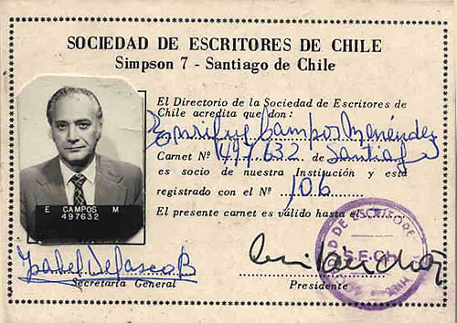 Admirador de los dictadores Primo de Rivera y de Franco, Enrique Campos Menéndez, el asesor cultural del régimen, en dos ocasiones formó parte del directorio de la Sociedad de Escritores de Chile (Sech). En el diario La Nación, el 2005, señaló que para el régimen “Trabajé gratis y con honores”. Además, agregó, quien dirigió el Consejo de Censura Cinematográfica: “También fui controlador”, aludiendo a su labor de censor. Sobre su injerencia en las decisiones del Premio Nacional comentó: “Yo sólo sugería nombres para el premio, no se olviden de esta o de otra persona”.