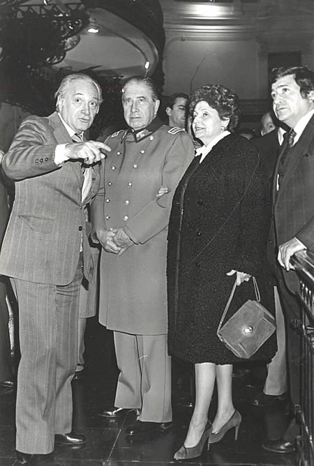 Augusto Pinochet y Lucía Hiriart junto a Enrique Campos Menéndez,