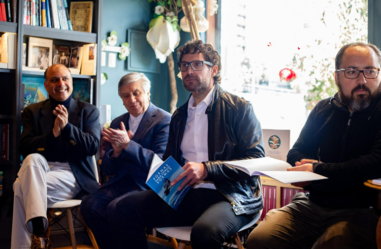 Junto a Javier Grover P., Nelson Navarro Poetas y el Filósofo Chileno Juan Carlos Alvial.