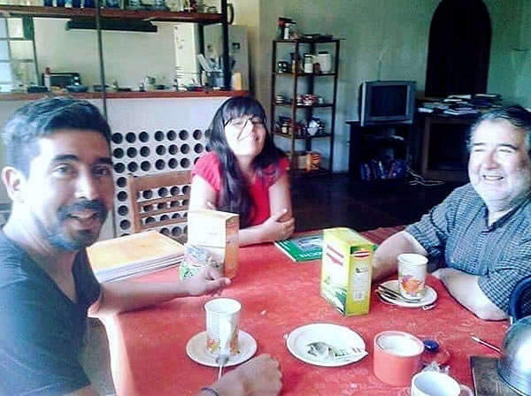 Arce Garín, a siniestra; al medio, Emma Villazón; a diestra, Pepe Cuevas —con mate de coca