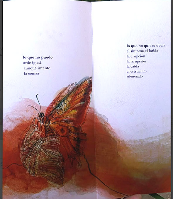 Qué más queda cuando tenemos frente a nosotros un conjunto de poemas y estos nos encandilan desde el título, nos obligan a ovillar y desovillar un tríptico. Imagino entonces a los indios Navajos trabajando con la lana y de fondo aquellos cánticos vocales que anuncian dicho ritual. ¿Qué hace Marcia Mendieta cuando las hojas de otoño se anuncian como esas pestañas que perdemos mientras nos corroe el sueño en la madrugada? La escritura como el tejido siempre han tenido un nudo, un lazo. El tejido como la escritura son lenguajes que llevan de manera implícita una forma de engaño. Los ciclos de la vida, el fuego, la llama, etc., aquellas formas que la voz poética nos presenta en tono melancólico, casi niña, casi adulta, casi voz, la construcción de una memoria íntima y personal.