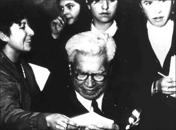 Fotografía superior: Manuel Rojas firmando autógrafos, hacia 1968/ Archivo del Escritor/