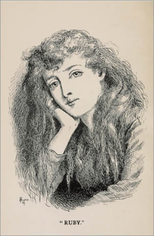 Ilustración de la obra original de Reade (1889). Este era el rostro de Rubí. Abajo se lee Ruby, su acepción en inglés.