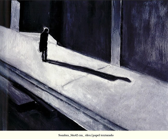 Es decir, cada oleo es “casi” una fotografía hecha a mano que posee la capacidad de dar forma al instante justo, al signo vivo que señala múltiples interpretaciones y sentidos; ahí donde el mundo palpita y lo efímero adquiere materialidad visual. Incluso podríamos hablar de una migración interior; desplazamientos expresivos entre luces y sombras, reales o no, en el claroscuro mental de Galicia.