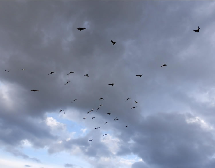 Las nubes van y vienen, vienen y van… El viento aviva o aligera su tranco. Ellas pasan sin